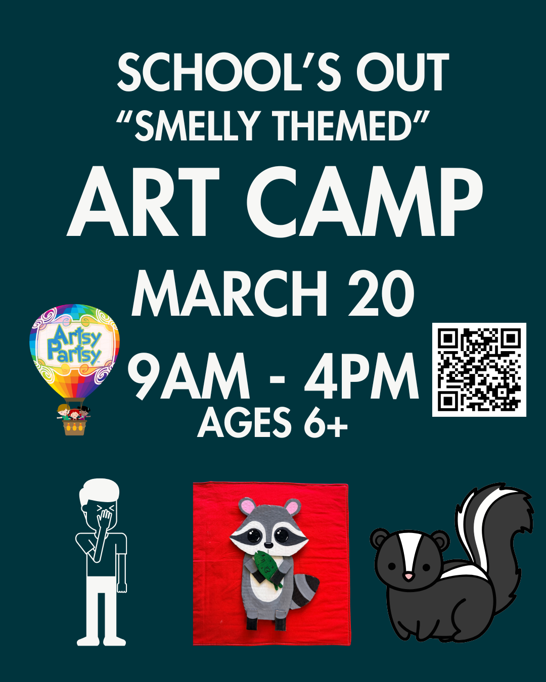 Art camps are for kids ages 6 and up. Children must be 6 at the start of their camp week NO EXCEPTIONS). The reason why our camps begin at age 6 is to allow for kids who really love art and may have an advanced skillset to thrive in our camps. Our seating is limited so this helps to keep space for our 6 and up artists.